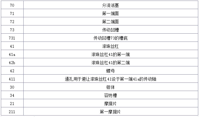 - 創(chuàng)新點(diǎn):分流活塞設(shè)計(jì)成兩個端面,端面上設(shè)有分流凸起,能夠分流驅(qū)動力,優(yōu)化摩擦片受壓情況,避免因受力不均導(dǎo)致制動性能下降。3. 具體技術(shù)細(xì)節(jié)