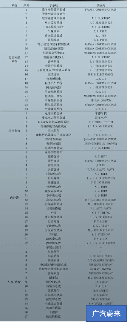 不知道多少人還記得之前廣汽蔚來那個很奇葩的BOM成本清單公布的事情,大家可以仔細看一下當時細分的類型,包括智能網(wǎng)聯(lián)、三電系統(tǒng)、內外飾和車身底盤。一個整車企業(yè)在制造和采購最大的工作,就是保證這些零部件可以順利拿回倉庫,然后根據(jù)生產(chǎn)計劃來排班。