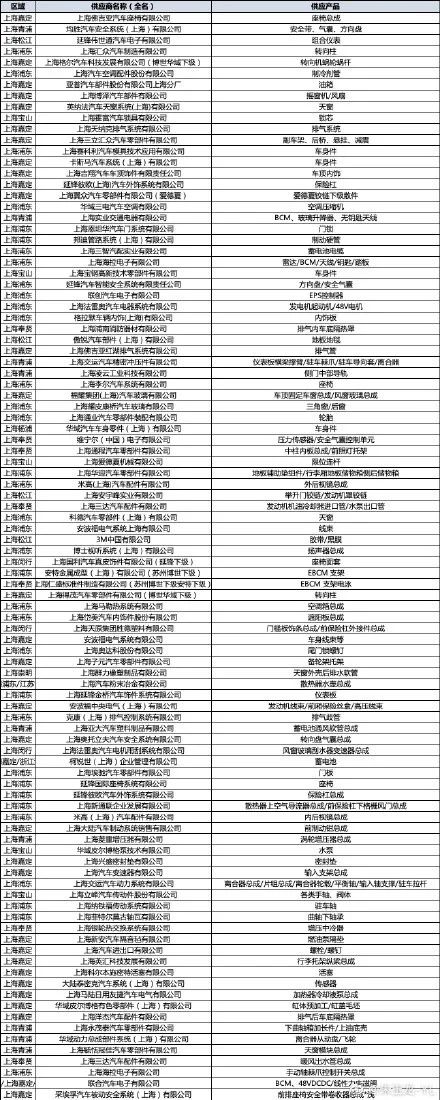 由于上海有著非常完整的汽車零部件產(chǎn)業(yè)鏈,和長三角的零部件制造基地一起為中國的汽車工業(yè)輸送著足夠有性價比的零部件。下面是排摸的基于上汽集團體系下的產(chǎn)品供應鏈的情況。