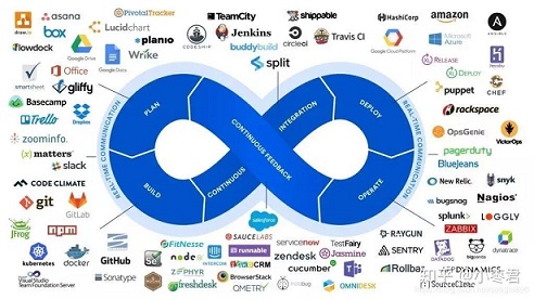 無論是縱向集成還是橫向集成,DevOps都需要通過工具鏈與持續(xù)集成、交付、反饋與優(yōu)化進行端到端整合。如華為的軟件開發(fā)云服務(wù), 基于二十幾年的研發(fā)實踐,融合DevOps理念方法,為企業(yè)提供一站式的云上開發(fā)工具平臺。華為軟件開發(fā)云提供項目管理、配置管理、代碼檢查、編譯構(gòu)建、測試、部署、發(fā)布等端到端地覆蓋全軟件生命周期的相關(guān)服務(wù)。類似的DevOps 工具數(shù)不勝數(shù),常見的DevOps 生態(tài)圈工具如圖 5。