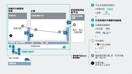 因此,這一套包含了抽象軟件層和基礎服務層(包括OS、車內(nèi)網(wǎng)絡、診斷等固件)在內(nèi)的基礎軟件平臺解決方案將成為車企需要把握的價值高地,也將成為供應商的全新產(chǎn)品機遇。這些機遇不但包括軟件平臺本身以及端到端應用軟件的提供,也包括相關的服務提供,如云服務、OTA服務等,如圖7。