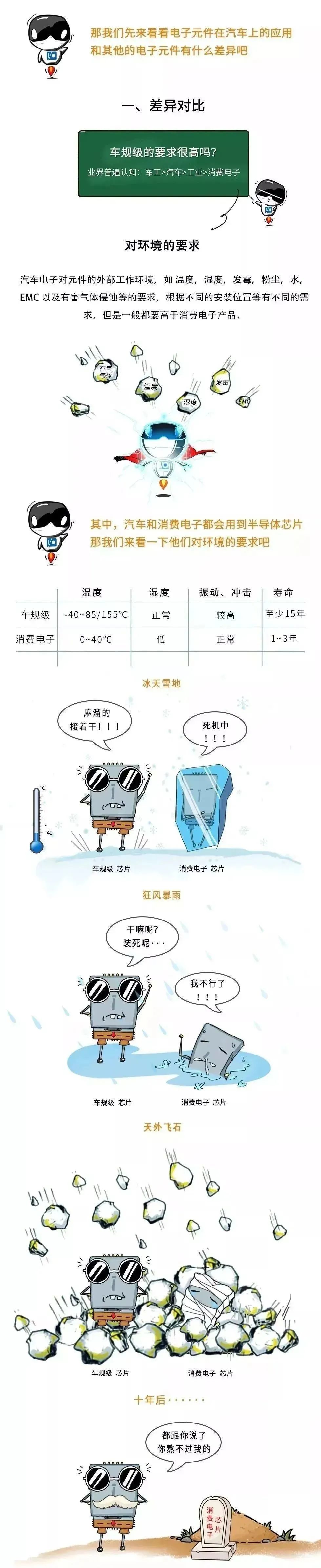 如果我們?cè)購(gòu)母鼜V的維度對(duì)比一下,會(huì)更有助于理解汽車級(jí)標(biāo)準(zhǔn)的嚴(yán)苛:
